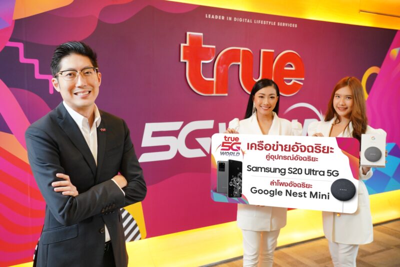กลุ่มทรู ผู้นำดิจิทัลไลฟ์สไตล์ครบวงจร ชูวิสัยทัศน์ “True 5G อัจฉริยภาพสู่โลกใหม่ที่ยั่งยืน”  โดย มร. จัสติน อัง รองหัวหน้าคณะผู้บริหารกลุ่ม ด้านการพาณิชย์ บมจ. ทรู คอร์ปอเรชั่น ตอกย้ำความมุ่งมั่นนำอัจฉริยภาพของเทคโนโลยี 5G  มอบประสบการณ์การใช้งานอัจฉริยะที่สมบูรณ์แบบ เชื่อมโยงเครือข่ายและอุปกรณ์อัจฉริยะแห่งยุค จัดเต็มโปรโมชั่นสุดเอ็กซ์คลูซีฟสำหรับลูกค้าที่ซื้อโทรศัพท์อัจฉริยะ Samsung Galaxy S20 Ultra 5G* รับ 5 อัจฉริยะจากกลุ่มทรู ได้แก่