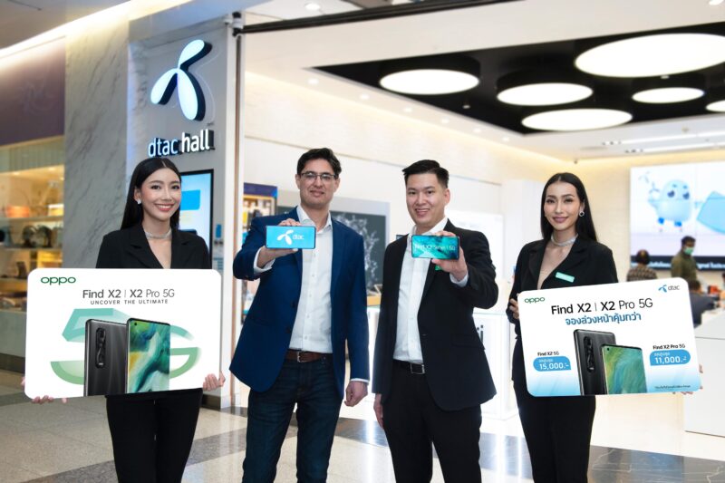 นาย อาร์สลัน จาเวด ผู้อำนวยการอาวุโส ฝ่ายการตลาด และผลิตภัณฑ์รายเดือน บริษัท โทเทิ่ล แอ็คเซ็ส คอมมูนิเคชั่น จำกัด (มหาชน) หรือดีแทค (ที่สองจากซ้าย) เดินหน้าไม่หยุดพัฒนาเครือข่ายและบริการให้แก่ลูกค้า โดยได้จัดเตรียมแผนงานเพื่อยกระดับการบริการต่างๆ รวมถึงเครือข่าย 5G ซึ่งผู้บริโภคจะได้เห็นภายในไตรมาสที่ 2 ของปี 2563 และล่าสุดได้ผนึกกำลังกับพันธมิตร คุณชานนท์ จิรายุกุล ประธานกรรมการอาวุโสฝ่ายบริหาร ออปโป้แห่งประเทศไทย (ที่หนึ่งจากซ้าย) มอบโปรโมชั่นสุดคุ้มกับ OPPO Find X2 Series 5G ทั้ง 2 รุ่นคือ OPPO Find X2 5G และ OPPO Find X2 Pro 5Gสมาร์ทโฟนที่ยกระดับประสบการณ์ของผู้ใช้งานในทุกๆด้าน และสามารถรองรับเครือข่าย 5G ได้อย่างเต็มรูปแบบ