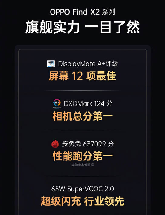 OPPO Find X2 Pro กลายเป็นสมาร์ทโฟนที่มีประสิทธิภาพสูงที่สุดในโลก อ้างอิงจากคะแนนทดสอบด้วยแอพพลิเคชั่น AnTuTu ที่ทำได้ถึง 637,099 คะแนน ด้วยชิปประมวลผล Qualcomm Snapdragon 865