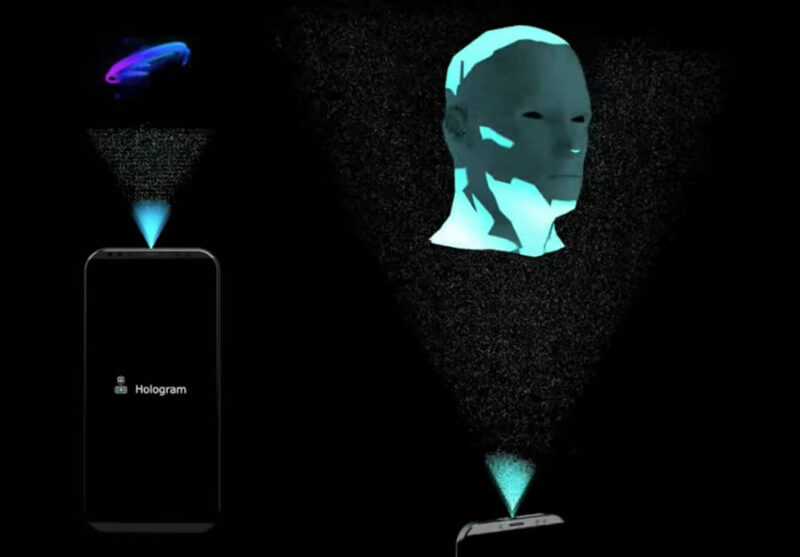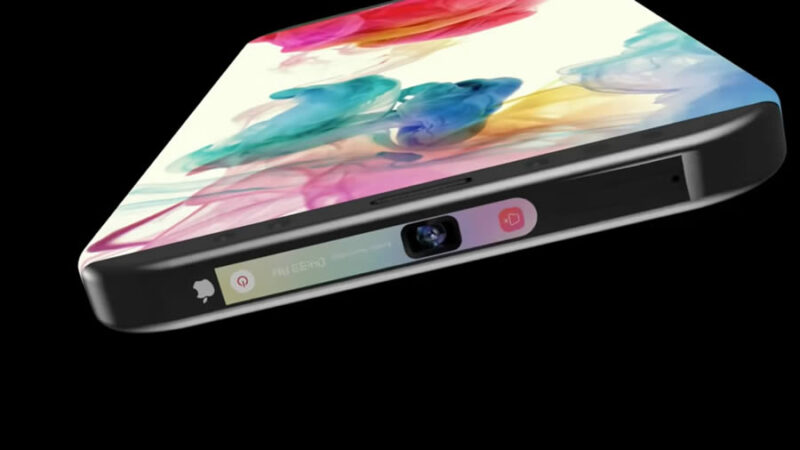 คอนเซ็ปต์ iPhone 12 ถูกสร้างมาเพื่อการเชื่อมต่อไร้สาย ไม่มีพอร์ตเชื่อมต่อใดๆ ไม่มีปุ่มกดแบบ Physical ด้านข้าง และที่น่าสนใจคือเลนส์โปรเจคเตอร์ด้านบน สามารถฉายภาพโฮโลแกรม 3 มิติได้