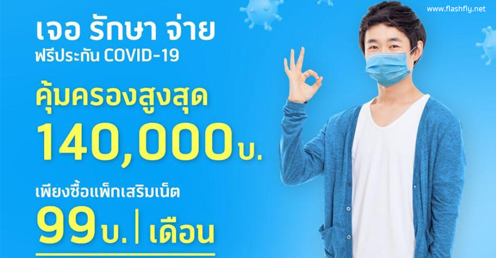 - สมัครแพ็กเกจเสริมอินเทอร์เน็ต 5 GB/365 วัน ในราคาเพียง 1,199 บาท รับฟรีประกัน Covid-19 365 วัน คุ้มครองสูงสุด 255,000 บาท สมัครกด *496*12# กดโทรออก
