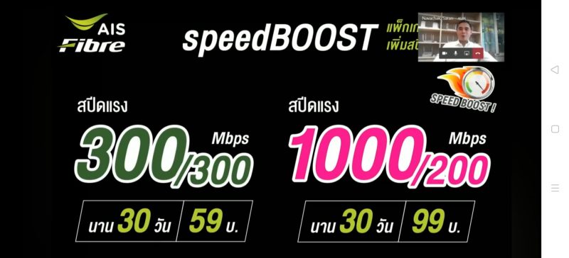 • โปรโมชั่นพิเศษ สำหรับลูกค้าปัจจุบัน เอไอเอส ไฟเบอร์ ที่ใช้แพ็กเกจ 699 บาทขึ้นไป สามารถสมัครใช้แพ็กเสริม Speed Boost ในราคาเพียง 99 บาทต่อเดือน เพื่อเพิ่มสปีดเป็น 1 Gbps / 200 Mbps พร้อมฟีเจอร์ Speed Toggle สลับความเร็วดาวน์โหลด/อัปโหลดได้ด้วยตัวเอง ตลอด 24 ชั่วโมง หรือ แพ็กเกจต่ำกว่า 699 บาท สมัครแพ็กเสริม Speed Boost 59 บาทต่อเดือน เพิ่มสปีดเป็น 300 Mbps / 300 Mbps สมัครได้แล้วตั้งแต่วันนี้ – 30 มิถุนายน 2563 และสามารถใช้งานแพ็กได้ต่อเนื่อง นาน 1 ปี นับจากวันที่สมัคร