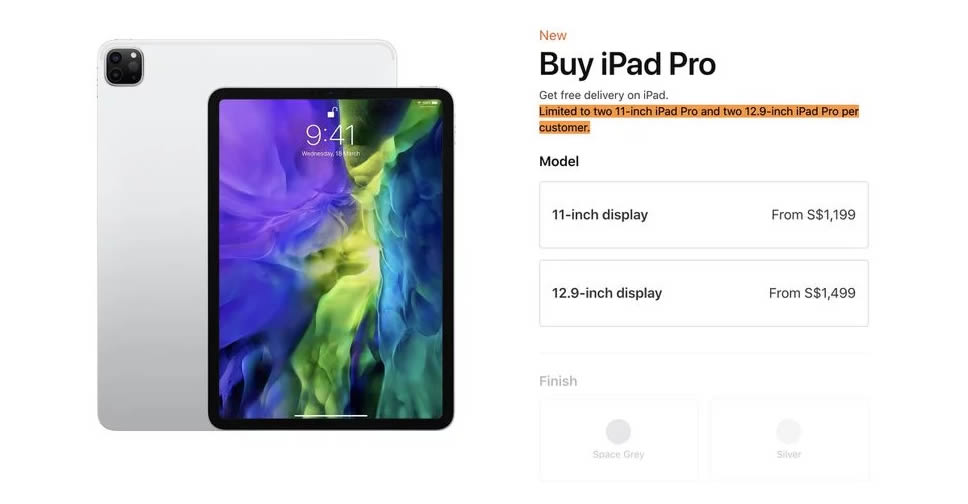 Apple เริ่มมีการจำกัดจำนวนการสั่งซื้อผลิตภัณฑ์ใหม่บนเว็บไซต์ทางการของ Apple ทั้งในสหรัฐอเมริกา แคนาดา ยุโรป เอเชีย และภูมิภาคอื่นๆ ทั่วโลก คาดว่าเป็นความพยายามของ Apple ในการปรับสมดุลระหว่างอุปสงค์และอุปทาน ในช่วงที่ไวรัสโคโรน่าสายพันธุ์ใหม่ 2019 หรือ COVID-19 กำลังระบาดหนักอยู่ในปัจจุบันนี้