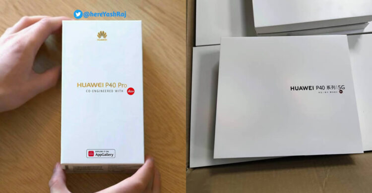 Yash Raj Chaudhary แชร์ภาพหลุดผ่านทางบัญชี Twitter @hereYashRaj แสดงให้เห็นรูปภาพกล่องบรรจุภัณฑ์ของสมาร์ทโฟนเรือธง Huawei P40 Pro 5G ที่มีความเรียบงาน เน้นสีขาวล้วน และพิมพ์ชื่อรุ่นไว้ด้วยหมึกสีดำไว้บนฝากล่อง