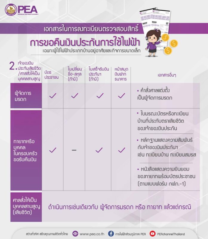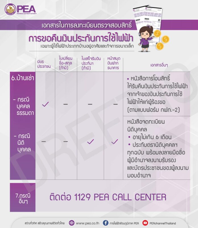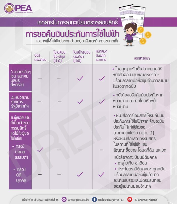 ผู้ใช้ไฟฟ้าประเภทที่ 1 (บ้านอยู่อาศัย) และประเภทที่ 2 (ธุรกิจขนาดเล็ก) มาตรวจสอบสิทธิ์ การคืนเงินประกันการใช้ไฟฟ้ากันครับ 🥰