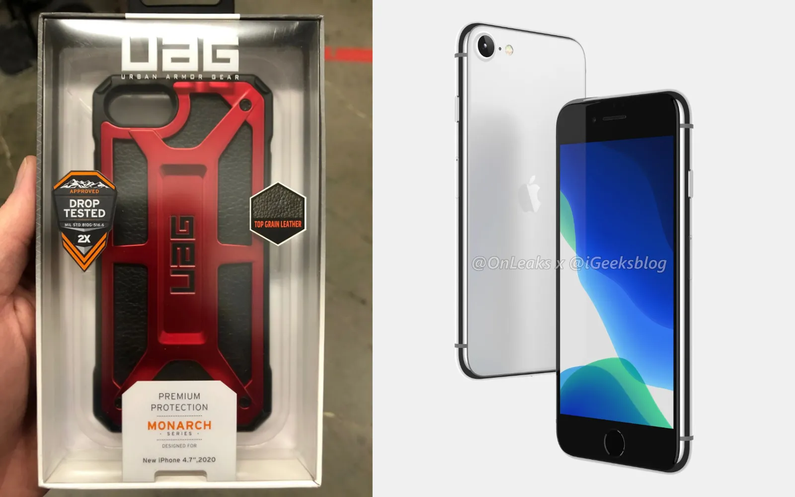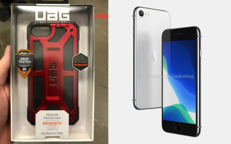 แหล่งข่าวของเว็บไซต์ MacRumors ได้แชร์รูปภาพเคสของ Urban Armor Gear สำหรับ iPhone รุ่นใหม่ ซึ่งถูกอ้างว่าอยู่ในคลังสินค้าของร้าน Best Buy ติดสติกเกอร์ว่าเป็นเคสสำหรับ iPhone 2020 รุ่น 4.7 นิ้ว และจะเริ่มนำออกมาจำหน่ายในวันที่ 5 เมษายนนี้ จึงเป็นไปได้ที่ iPhone รุ่นใหม่ของ Apple จะเปิดตัวในช่วงเวลาเดียวกัน