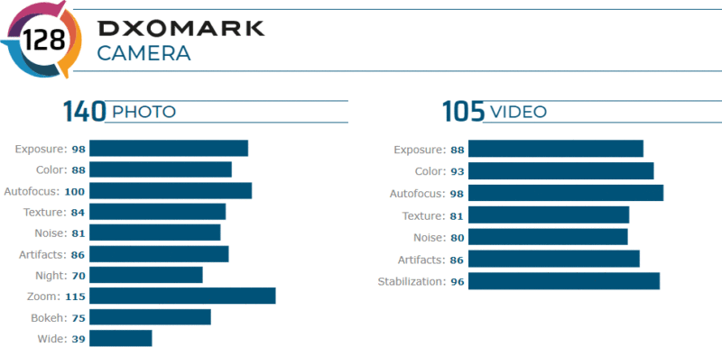 คะแนนรวม 128 คะแนน มาจากคะแนนที่ได้จากการถ่ายภาพนิ่ง 140 คะแนน และคะแนนสำหรับการถ่ายวีดีโอ 105 คะแนน