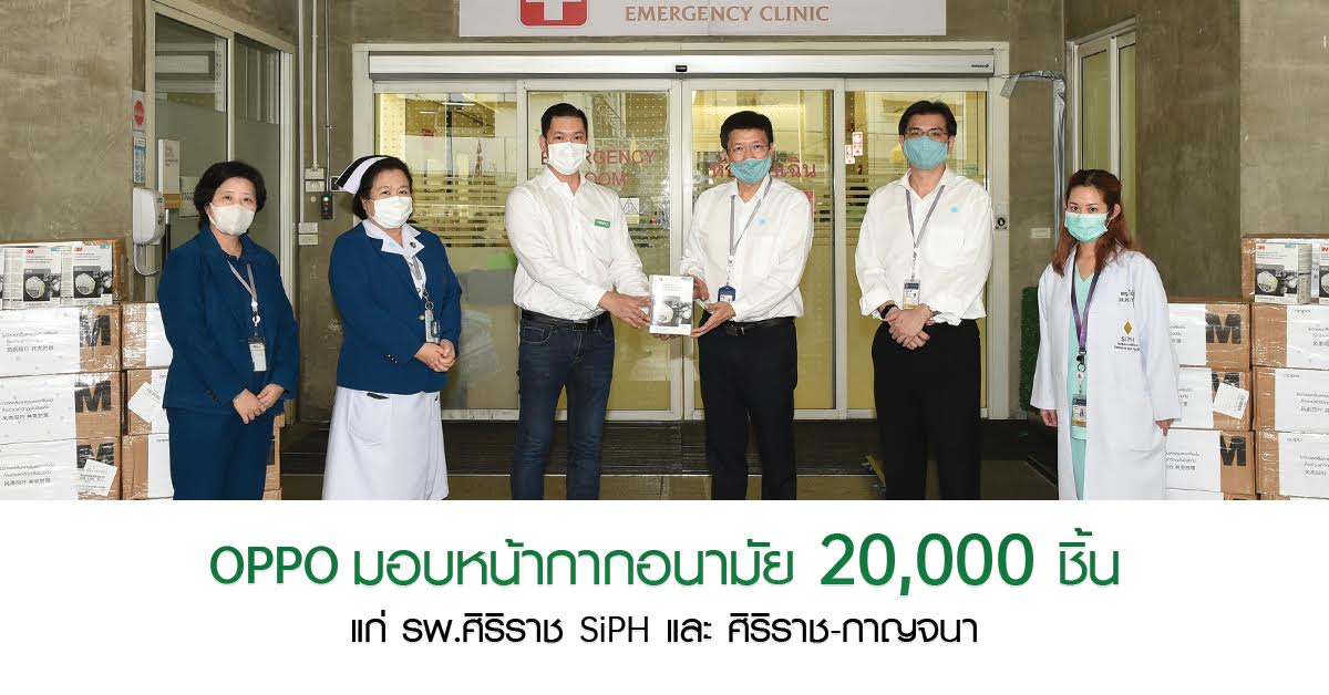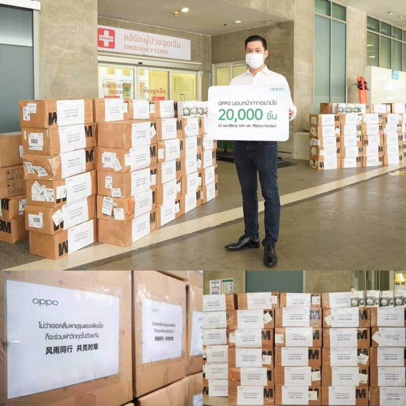 สำนักงานใหญ่ออปโป้ แบรนด์สมาร์ทโฟนยักษ์ใหญ่ของโลก ตระหนักถึงความรุนแรงของการแพร่ระบาดของโรค COVID-19 จากไวรัสโคโรน่า ซึ่งทำให้เกิดความต้องการในการใช้หน้ากากอนามัยเป็นจำนวนมาก จึงได้บริจาคหน้ากากอนามัย ประเภท N95 จำนวน 20,000 ชิ้นให้แก่โรงพยาบาลศิริราช ปิยมหาราชการุณย์ และศูนย์การแพทย์กาญจนาภิเษก โดยในครั้งนี้ทางโรงพยาบาลศิริราช ปิยมหาราชการุณย์ เป็นตัวแทนรับมอบ
