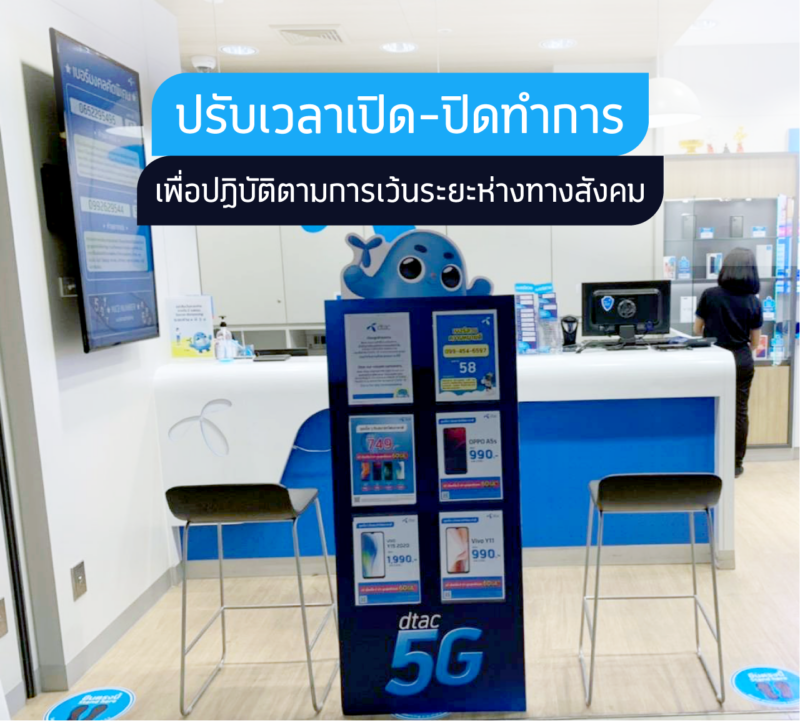 - ยังคงมีศูนย์บริการจำนวน 175 ร้านที่ยังไม่เปิดให้บริการจนกว่ามีประกาศเปลี่ยนแปลง โดยสามารถค้นหาศูนย์บริการใกล้บ้านท่านได้ที่นี่ https://www.dtac.co.th/help/store-locations.html