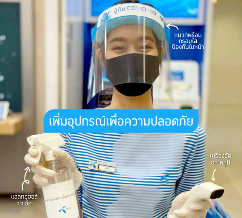 ดีแทคได้เพิ่มมาตรการรักษาความปลอดภัยเพื่อลูกค้าและพนักงานที่ให้บริการ ดังนี้