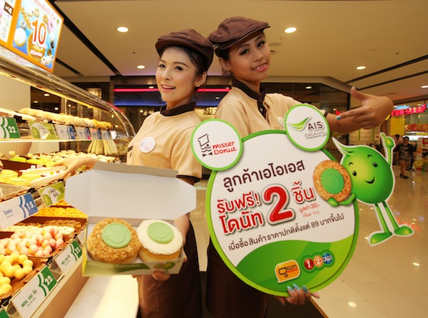 ความสุขใหม่ๆ มีได้เสมอ ในแบบคุณ เมื่อเอไอเอส จับมือ มิสเตอร์ โดนัท มอบความพิเศษให้กับลูกค้าเอไอเอสอีกครั้ง ซึ่งปีนี้เพิ่มความพิเศษยิ่งขึ้นด้วยการเปิดตัวโดนัท 2 รสชาติใหม่ พร้อมโปรโมชั่นสุดคุ้มเอาใจผู้ที่ชื่นชอบโดนัท อร่อย สดใหม่ เเบบมีเอกลักษณ์ของมิสเตอร์ โดนัท