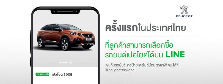 โดยนอกจากจะใช้ LINE Official Account (LINE OA) เป็นช่องทางหลักในการให้บริการและมอบประสบการณ์ที่ดีต่อลูกค้าแล้ว เปอโยต์ยังเป็นแบรนด์ยานยนต์รายแรกที่ได้ใช้เครื่องมือใหม่ล่าสุดของ LINE คือ MyShop มาช่วยเสริมประสิทธิภาพของ LINE OA ให้ครบวงจรมากยิ่งขึ้น ทำให้ทีมงานสามารถดูแลระบบสินค้า ดูแลลูกค้าผ่าน LINE ได้รวดเร็วทันใจ ในขณะเดียวกัน ลูกค้าสามารถเลือกซื้อรถยนต์ ติดต่อฝ่ายขาย รวมถึงจ่ายเงินผ่าน LINE OA ได้เสร็จสรรพในที่เดียว เป็นการเปิดมิติใหม่ในภาคธุรกิจให้แก่แบรนด์อื่นๆ ได้ศึกษาทำการตลาดได้อย่างมีประสิทธิภาพมากขึ้น