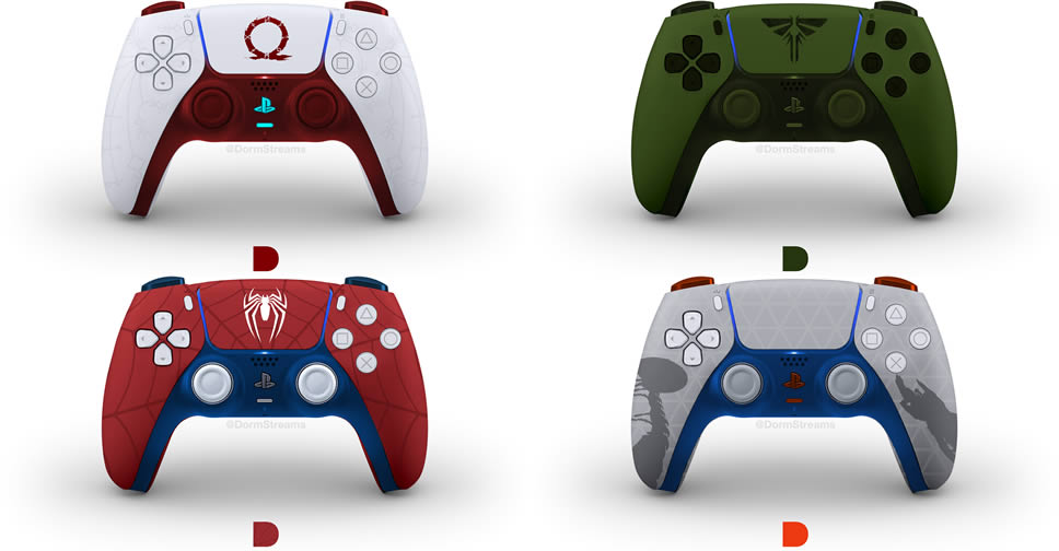 ผู้ใช้ Twitter @DormStreams ซึ่งเป็นนักแคสท์เกมผ่าน Twitch และยังเป็นดีไซน์เนอร์ ได้ออกแบบ DualSense รุ่นพิเศษให้เราได้ชมกัน 4 แบบ เริ่มจากแบบแรก สีขาว-แดง ได้รับแรงบันดาลใจมาจากเกม God of War, แบบที่สอง สีเขียว-ดำ ได้รับแรงบันดาลใจมาจากเกม The Last of Us, แบบที่สาม ชัดเจนว่าได้รับแรงบันดาลใจมาจากเกม Marvel’s Spider-Man และแบบที่สี่ ได้รับแรงบันดาลใจมาจากเกม Horizon Zero Dawn