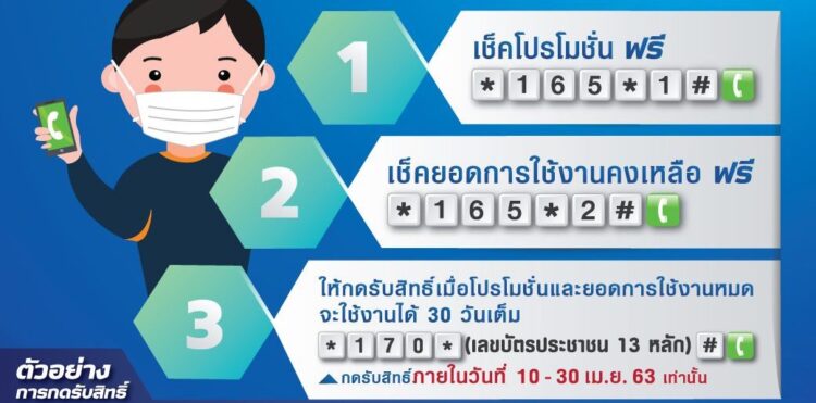 กด 170 ตามด้วยหมายเลขบัตรประชาชน 13 หลัก # แล้วกดโทรออก