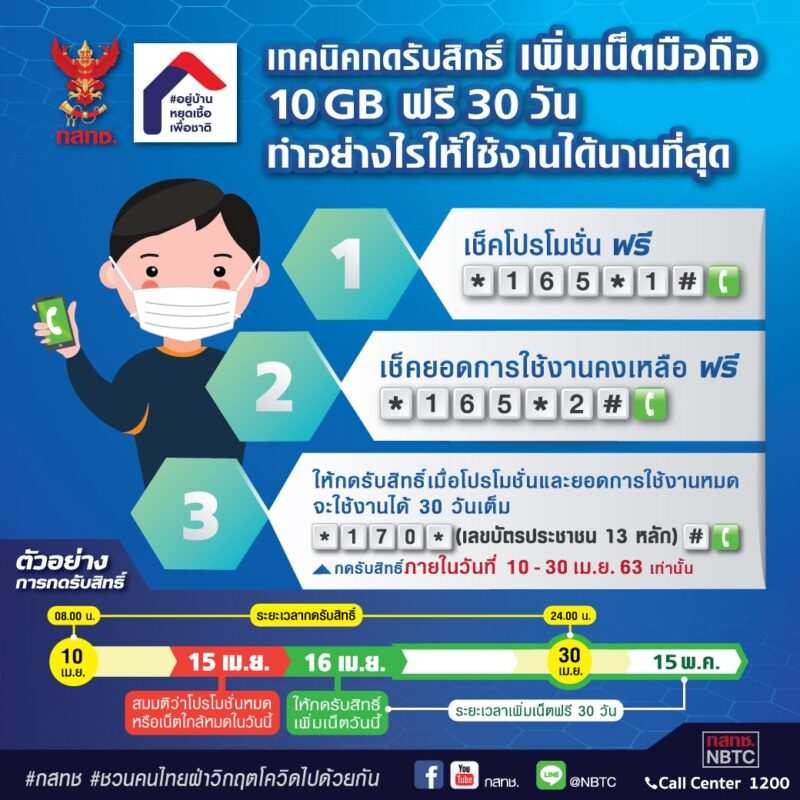 วิธีรับสิทธิ์เน็ตมือถือ 10GB ฟรี 30 วัน