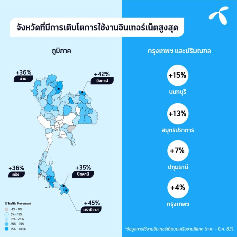 ล่าสุดรายงานการใช้งานอินเทอร์เน็ตจากดีแทค (กุมภาพันธ์-มีนาคม 2563) มีดังนี้