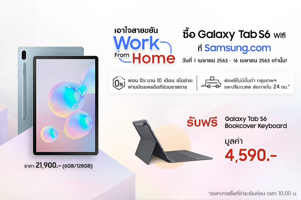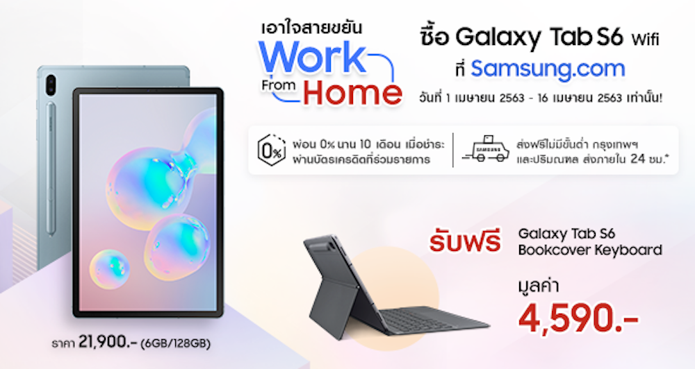 พิเศษซื้อวันนี้ – 16 เมษายนนี้ รับฟรีทันที Samsung Galaxy Tab S6 Bookcover Keyboard มูลค่า 4,590 บาท เป็นเจ้าของได้แล้วที่ Samsung.com