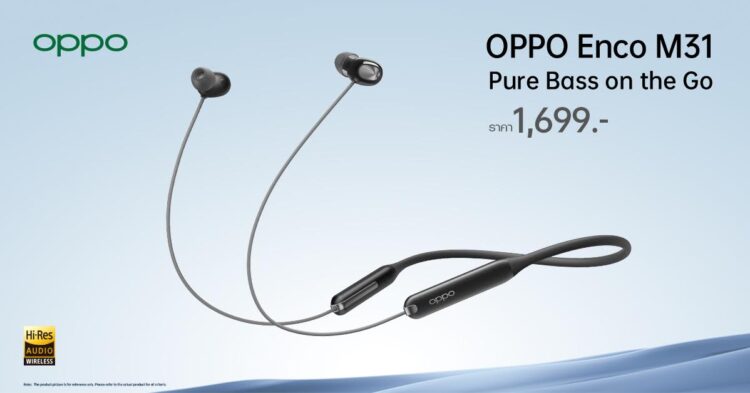 OPPO ผู้นำตลาดสมาร์ทโฟนไทย พร้อมวางจำหน่าย OPPO Enco M31 Wireless Headphones อย่างเป็นทางการ ในราคา 1,699 บาท ผ่านช่องทางออนไลน์ Lazada, Shopee, JD Central และ Thisshop