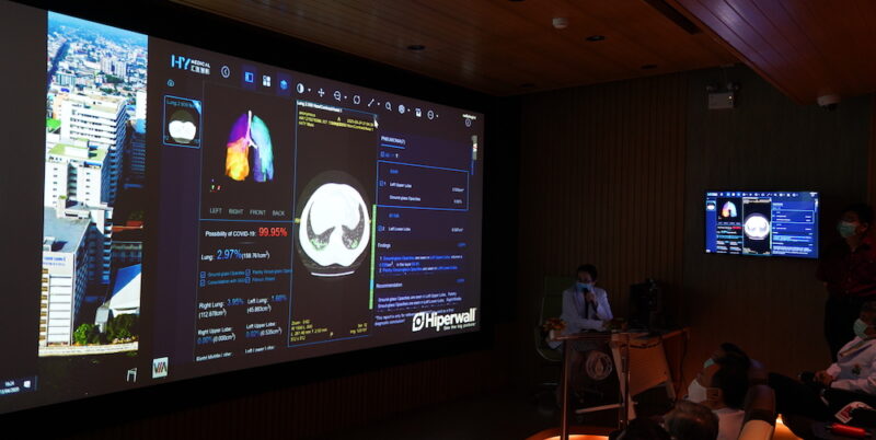 ด้านศาสตราจารย์ ด็อกเตอร์ นายแพทย์ประสิทธิ์ วัฒนาภา คณบดีคณะแพทยศาสตร์ศิริราชพยาบาล มหาวิทยาลัยมหิดล กล่าวว่า “การตรวจผู้ป่วยที่เป็นหรือสงสัยว่ามีการติดเชื้อโควิด-19 ด้วยเครื่องเอกซเรย์คอมพิวเตอร์ (CT) นับเป็นวิธีหนึ่งในการตรวจวินิจฉัยและติดตามการรักษาในผู้ป่วยโควิด-19 ซึ่งในผู้ป่วยบางรายอาจต้องตรวจซ้ำและเปรียบเทียบอ่านผลภาพการตรวจหลายครั้ง เทคโนโลยี AI จะช่วยให้แพทย์นำมาใช้วินิจฉัยผลตรวจ CT ของผู้ป่วยที่ติดเชื้อได้อย่างแม่นยำและรวดเร็ว ช่วยให้แพทย์สามารถนำมาใช้วินิจฉัยผลตรวจจากภาพเอกซเรย์คอมพิวเตอร์ (CT) ได้อย่างแม่นยำและรวดเร็ว สามารถวิเคราะห์ผลได้ภายในเวลาเพียง 25 วินาทีต่อ 1 เคส จึงลดภาระให้บุคลากรทางการแพทย์ไทยได้เป็นอย่างมาก ที่สำคัญ ความเร็วในการส่งข้อมูลของเครือข่าย 5G จะยิ่งเพิ่มประสิทธิภาพให้บุคลากรทางการแพทย์รับมือสถานการณ์ในขณะนี้ได้ดียิ่งขึ้น เพราะช่วยให้ระบบทางการแพทย์ต่างๆ ตอบสนองการใช้งานได้รวดเร็ว ช่วยให้ติดตามอาการและเก็บข้อมูลคนไข้ดีขึ้น ทั้งยังช่วยให้การจัดสรรทรัพยากรทางการแพทย์มีประสิทธิภาพขึ้นอีกด้วย”