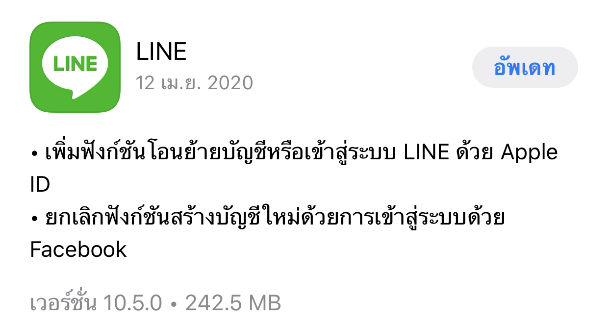 LINE ออกอัพเดทเวอร์ชั่น 10.5.0 ล่าสุด โอนย้ายหรือเข้าสู่ระบบด้วย Apple ID ได้แล้ว สมัครบัญชีใหม่ด้วย Facebook ไม่ได้แล้ว