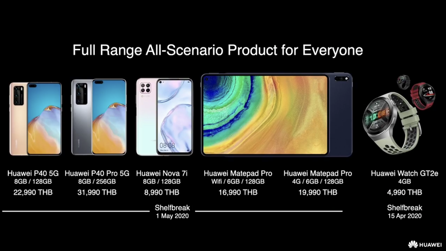 มาต่อกันกับกองทัพสินค้าใหม่ของ Huawei นอกจากจะมีพระเอกอย่าง Huawei P40 Series 5G ที่ได้เปิดตัวพร้อมประกาศราคาไปเรียบร้อยแล้ว มาดูราคาโปรโมชั่นของสินค้าอื่นๆที่เปิดตัวในวันนี้ได้แก่ Huawei Nova 7i ,Huawei MatePad Pro และ Huawei Watch GT2e