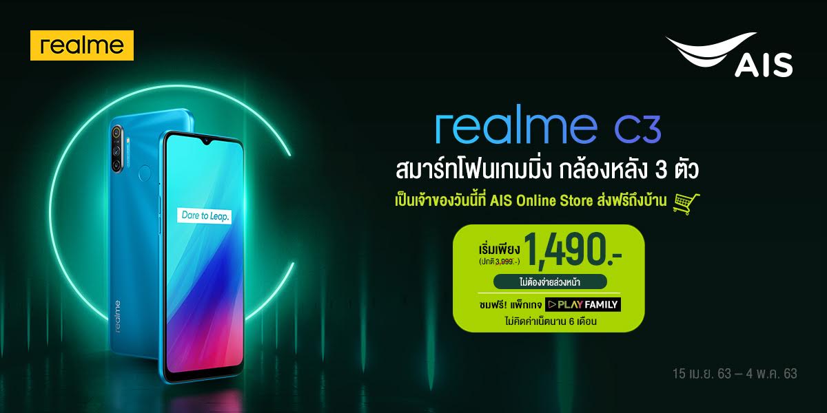 realme แบรนด์สมาร์ทโฟนเพื่อคนรุ่นใหม่ที่เติบโตเร็วที่สุดในโลก หลังจากการเปิดตัวไปเมื่อต้นปี สำหรับ realme C3 สมาร์ทโฟนสเปคดี ดีไซน์โดดเด่น ตอบโจทย์สายเกมเมอร์ ล่าสุดเพื่อเป็นการตอบแทนกระแสตอบรับที่ดีเยี่ยม realme จับมือร่วมกับ AIS มอบโปรโมชั่น realme C3 สุดคุ้ม จากราคาปกติ 3,999 บาท มาให้เป็นเจ้าของกันในราคาพิเศษเพียง 1,490 บาท เท่านั้น เพียงซื้อเครื่องพร้อมสมัครแพ็กเกจ 4G Hot Deal MAXX 499 บาท โดยไม่ต้องชำระค่าบริการรายเดือนล่วงหน้า สามารถเป็นเจ้าของได้แล้ววันนี้ถึงวันที่ 4 พฤษภาคม 2563