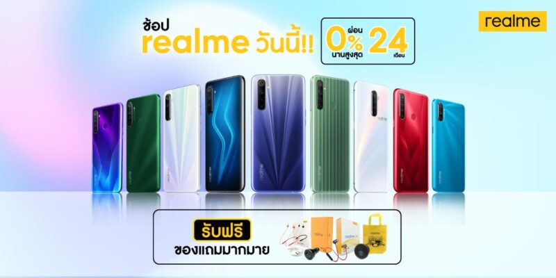 รวมโปรสมาร์ทโฟน realme ผ่อน 0% นานสูงสุด 24 เดือน ของแถมสุดพรีเมียม realme Buds Wireless, Special Gift และ realme Bag