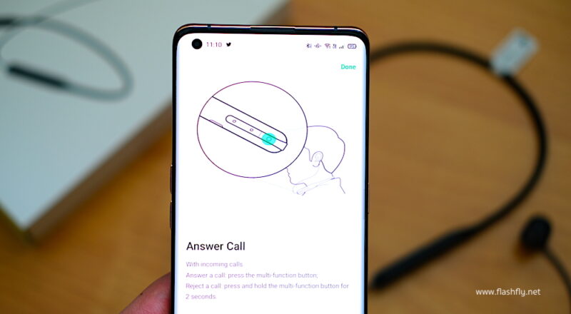 สำหรับวิธีการจับคู่กับสมาร์ทโฟนให้กดปุ่มมัลติฟังก์ชันที่ปลายสายคล้องคอฝั่งซ้ายมือ ค้างไว้จนไฟสีเขียวติด แล้วจะสามารถจับคู่ได้ทันที