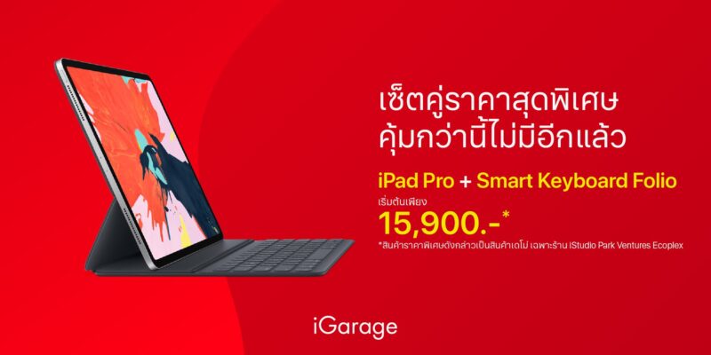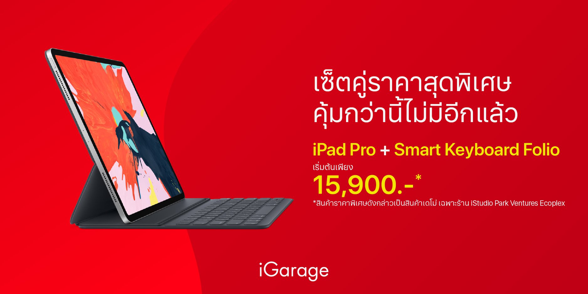 โปรร้อนแรงจากทาง iGarage กับเซ็ตคู่ราคาสุดพิเศษ คุ้มกว่านี้ไม่มีอีกแล้ว iPad Pro + Smart Keyboard Folio สินค้าตัวโชว์ (Demo) เริ่มต้นเพียง 15,900 บาท จำนวนจำกัด