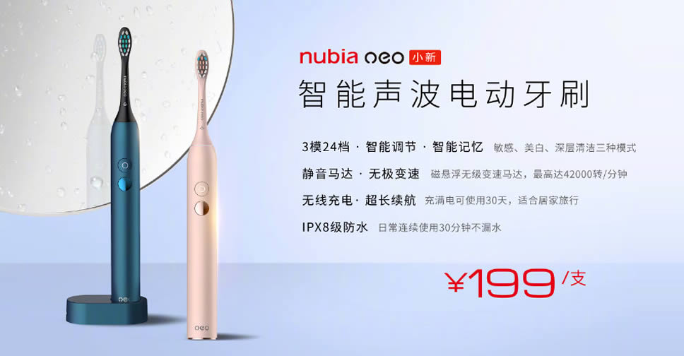 Nubia เป็นแบรนด์ที่หลายคนรู้จักในฐานะผู้ผลิตสมาร์ทโฟน ได้จัดกิจกรรมออนไลน์เพื่อเปิดตัวแปรงสีฟันไฟฟ้า Neo Smart Sonic และมาพร้อมกล่องฆ่าเชื้อหัวแปรง Neo Smart Toothbrush Sterilizer ทั้ง 2 อย่างถูกผลิตออกมาเพื่อใช้งานคู่กัน แต่ต้องซื้อแยกต่างหาก