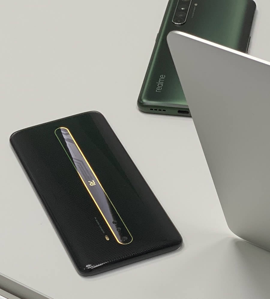 จากภาพหลุดจะเห็นว่าพื้นผิวด้านหลังถูกเคลือบด้วยลวดลายเคฟลาร์ แสดงให้เห็นถึงความสปอร์ต คาดด้วยแถบไฟ RGB ตรงกึ่งกลาง และภายในยังติดตั้งกล้องไว้ 3 ตัว จัดวางในแนวตั้ง โดยมีโลโก้ realme อยู่ตรงกึ่งกลาง