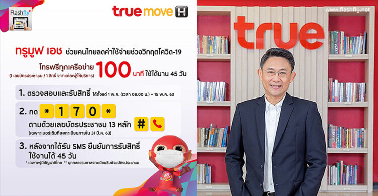 นายสุภกิจ วรรธนะดิษฐ์ หัวหน้าคณะผู้บริหารกลุ่ม ด้านการพาณิชย์ บมจ.ทรู คอร์ปอเรชั่น กล่าวว่า ในช่วงวิกฤตโควิด-19 ที่การสื่อสารสำคัญที่สุด ทรูมูฟ เอช ดูแลเพิ่มประสิทธิภาพเครือข่ายให้ลูกค้าติดต่อสื่อสารได้อย่างต่อเนื่อง และพร้อมสานต่อความตั้งใจที่ทรูจะร่วมดูแลไทยในรูปแบบต่างๆ โดยหลังจากที่ได้สนับสนุนแนวทางกสทช. มอบสิทธิ์ให้ลูกค้าทรูรับเพิ่มเน็ตมือถือทรูมูฟ เอช 10GB และอัปความเร็วเน็ตบ้านทรูออนไลน์เป็น 100Mbps ใช้ได้นาน 30 วัน โดยไม่ต้องเสียค่าใช้จ่ายเพิ่มแล้ว ล่าสุด ทรูมูฟ เอช พร้อมช่วยลดภาระค่าใช้จ่ายประชาชน ให้สิทธิ์โทรฟรีทุกเครือข่าย 100 นาที ใช้ได้นาน 45 วัน นับตั้งแต่วันที่ได้รับ SMS ยืนยัน สิทธิพิเศษนี้สำหรับลูกค้าทรูมูฟ เอช ประเภทบุคคลธรรมดาทั้งแบบเติมเงินและแบบรายเดือนที่สมัครใช้บริการครบถ้วนภายในวันที่ 31 มีนาคม 2563 เท่านั้น สามารถรับสิทธิ์ได้ง่ายๆ เพียงกด *170* เลขบัตรประชาชน 13 หลัก #โทรออก จากหมายเลข ทรูมูฟ เอช ที่ต้องการรับสิทธิ์ใช้งาน เพื่อตรวจสอบและขอรับสิทธิ์ ตั้งแต่วันที่ 1 (เวลา 08.00 น.) – 15 พฤษภาคม 2563 โดย 1 เลขบัตรประชาชน สามารถรับได้ 1 สิทธิ์ จากแต่ละผู้ให้บริการ
