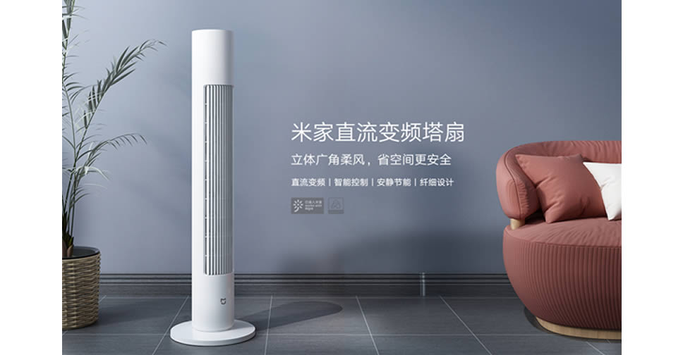 พัดลมทาวเวอร์ Mijia DC Inverter ทำงานเงียบ ให้ความเย็นแบบธรรมชาติเหมือนสายลม ปล่อยลมกว้าง 150 องศา สามารถเข้าถึงปริมาณอากาศสูงสุด 541 ลูกบาศก์เมตร และสนับสนุนการเชื่อมต่อกับแอพพลิเคชั่นสมาร์ทโฮมของ Xiaomi