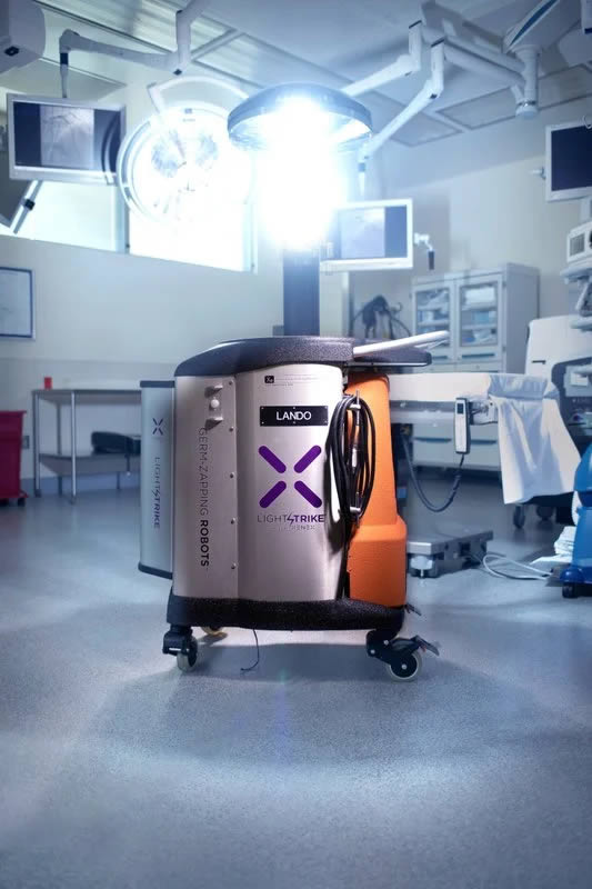 Xenes Disinfection Services ที่มีฐานอยู่ในเท็กซัส สหรัฐอเมริกา ได้ประกาศความสำเร็จจากการทดสอบหุ่นยนต์ LightStrike ที่สามารถกำจัดไวรัสโคโรน่าสายพันธุ์ใหม่ 2019 หรือ COVID-19 ที่ติดอยู่ตามเตียง ลูกบิดประตู และพื้นผิวอื่นๆ ด้วยแสง UV ในเวลาเพียง 2 นาที