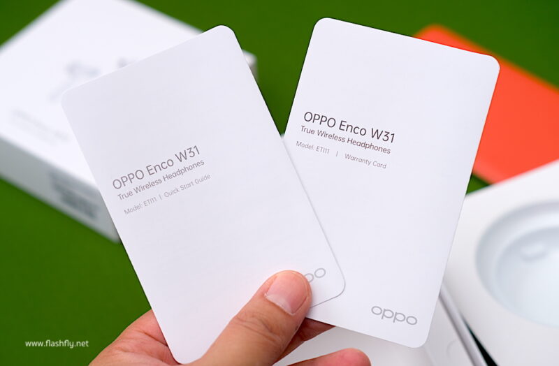 เปิดฝาออกมาก็จะพบกับตัวเคสดีไซน์แบบวงกลมของ OPPO Enco W31 ที่เก็บตัวหูฟังไว้ภายใน โดยในกล่องจะมีจุกหูฟังเพิ่มมาให้อีก 2 คู่คือขนาดใหญ่ และขนาดเล็ก สายชาร์จ USB-C รวมไปถึงคู่มือการใช้งานและเอกสารรับประกันสินค้า