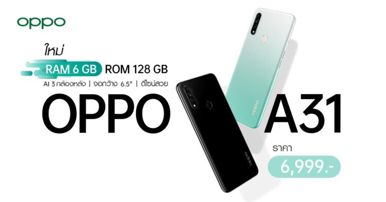 มาแล้ว!! OPPO A31 รุ่นอัพเกรด RAM 6GB และ ROM 128 GB แรง ลื่น ยิ่งกว่า ในราคาเพียง 6,999 บาท