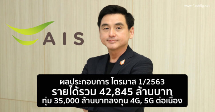 AIS รายงานผลประกอบการ ไตรมาส 1/2563 รายได้รวม 42,845 ล้านบาท และมีกำไรสุทธิ 7,004 ล้านบาท* สำหรับธุรกิจโทรศัพท์เคลื่อนที่ มีรายได้ลดลง -1.1% เทียบกับปีก่อน ขณะที่ ธุรกิจเน็ตบ้าน เอไอเอส ไฟเบอร์ ยังคงเติบโตได้ดี รายได้เพิ่มขึ้น 27% จากปีก่อน ทั้งนี้ เอไอเอสพร้อมรับมือจากผลกระทบ COVID-19 ด้วยสถานะทางการเงินที่แข็งแกร่ง และคงงบการลงทุนเครือข่าย รวม 35,000 – 45,000 ล้านบาท เดินหน้าพัฒนาโครงข่ายบริการ 5G และเสริมสร้างเครือข่าย 4G ให้มีความแข็งแกร่งยิ่งขึ้น และร่วมเป็นส่วนหนึ่งของสังคมไทยในการนำโครงสร้างพื้นฐานทางดิจิทัลไปช่วยเหลือและฟื้นฟูประเทศในช่วงระหว่างและหลังวิกฤต COVID-19 อย่างเต็มที่
