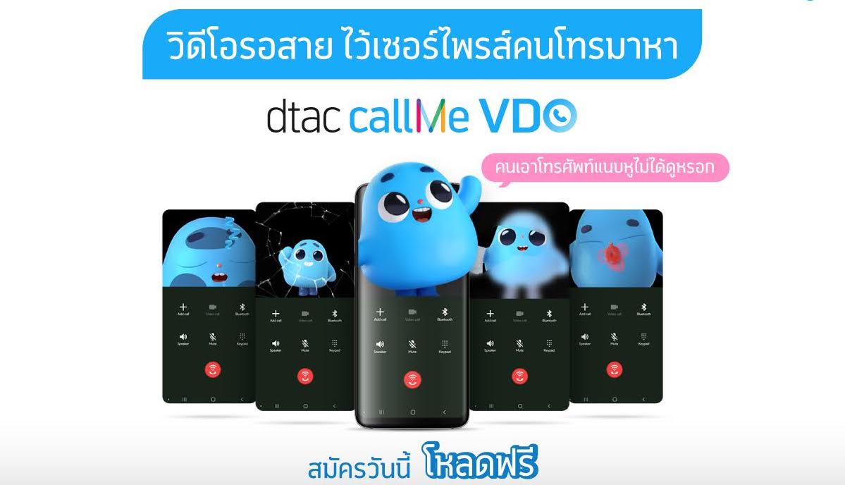 ดีแทคแนะนำบริการรอสายใหม่ล่าสุด dtac callMe VDO สู่ตลาดรายแรก ที่มอบประสบการณ์การโทรแบบใหม่ เซอร์ไพรส์คนโทรหาด้วยวิดีโอรอสายที่เลือกสรรได้ด้วยตัวคุณเอง จากมิวสิควิดีโอของศิลปินในดวงใจ รวมถึง คาแรคเตอร์ “ดัง” จากโลกโซเชียล เมื่อลูกค้าเลือกวิดีโอ ปลายทางที่โทรหาลูกค้าที่สมัครบริการ จะเห็นวิดีโอภาพและเสียงระหว่างรอสาย แทนที่จะได้ยินเสียงรอสายแบบเดิม เปิดตัวด้วยคอลเล็กชั่นน้องตัว d ที่นับเป็นการสร้างปรากฏการณ์ใหม่ในยุคของวิดีโอสั้น ที่บ่งบอกความเป็นตัวตนของคุณในการสื่อสาร ลูกค้าดีแทคสมัครได้จากมือถือทุกรุ่น