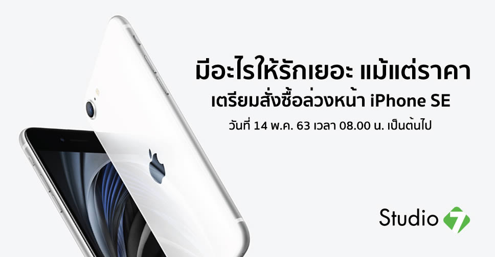 Studio 7 ตัวแทนจำหน่ายผลิตภัณฑ์ของ Apple ที่ได้รับการแต่งตั้งอย่างเป็นทางการในประเทศไทย เปิดให้ลงทะเบียนแสดงความสนใจ iPhone SE รุ่นที่ 2 ผ่านเว็บไซต์ www.studio7thailand.com ก่อนจะเปิดให้ทำรายการสั่งซื้อตั้งแต่วันที่ 14 พฤษภาคม 2563 ตั้งแต่เวลา 8.00 น. เป็นต้นไป