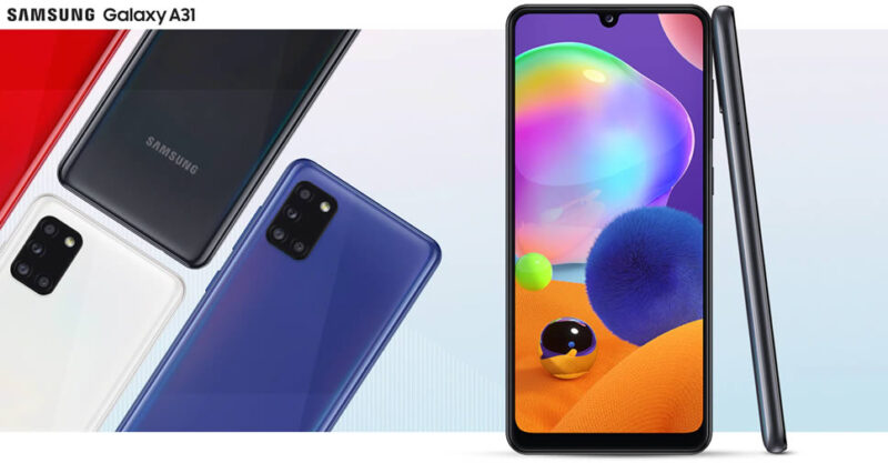 Samsung เปิดตัวสมาร์ทโฟน Galaxy A31 ในประเทศไทยแล้ว พร้อมวางจำหน่ายทันทีผ่านช่องทางออนไลน์ ราคา 8,999 บาท มีให้เลือก 3 สี ได้แก่ สีดำ สีขาว และ สีฟ้า รองรับฟีเจอร์สแกนลายนิ้วมือบนหน้าจอ