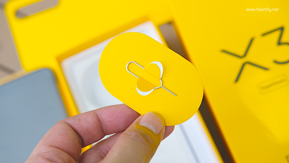 เมื่อเปิดฝากล่องออกมาจะพบกับกล่องเอกสารสีเหลืองที่มีข้อความต้อนรับเข้าสู่ครอบครัว realme