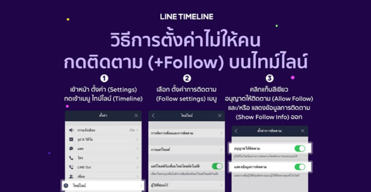 อย่างไรก็ตาม ข้อมูลการติดตามของเรา จะแสดงผลให้คนอื่นเห็นว่าผู้ใช้งานกำลังติดตามบัญชีใครอยู่บ้าง ซึ่งวันนี้ LINE ก็ได้แนะนำวิธีการซ่อนข้อมูลการติดตามบนไทม์ไลน์ไม่ให้ใครเห็น โดยปกติแล้วเมื่อเข้าไปที่แอพ LINE แล้วไปที่ฟีเจอร์ไทมไลน์ ก็จะมองเห็นการแนะนำอยู่ด้านบน เมื่อแตะแล้วจะนำทางไปที่การตั้งค่า หรือให้ทำตามคำแนะนำด้านล่าง