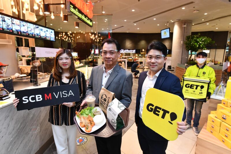 นางสาวอรรัตน์ ชุติมิต รองผู้จัดการใหญ่อาวุโส ประธานเจ้าหน้าที่บริหาร กลุ่มธุรกิจ Retail and Business Banking ธนาคารไทยพาณิชย์ กล่าวว่า “ท่ามกลางความเปลี่ยนแปลงของโลกยุค Digital Disruption ธนาคารไทยพาณิชย์จึงให้ความสำคัญกับการนำดิจิทัลเทคโนโลยีมาพัฒนารูปแบบการให้บริการทางการเงินที่หลากหลายเพื่อตอบโจทย์ความต้องการของลูกค้าในยุคปัจจุบันที่เปลี่ยนแปลงอย่างรวดเร็วได้อย่างตรงจุด ล่าสุด ธนาคารได้สนับสนุนไอเดียและโมเดลธุรกิจรูปแบบใหม่ของสองพันธมิตรทางธุรกิจอย่างเดอะมอลล์ และ GET ในการเปิดตัวโมเดล GET FOODHALL ที่จะช่วยส่งเสริมผู้ประกอบการร้านค้า ช่วยอำนวยความสะดวกให้กับลูกค้า และสามารถตอบโจทย์การใช้ชีวิตของคนเมืองในยุคปัจจุบันได้เป็นอย่างดี อีกทั้งยังสอดคล้องกับกระแสฟู้ดเดลิเวอรี่ที่กำลังเติบโตอย่างต่อเนื่อง ทั้งนี้เพื่อเป็นการส่งเสริมและกระตุ้นให้เกิดการทดลองใช้งานบริการ GET FOODHALL ในช่วงเปิดตัว ธนาคารได้จัดโปรโมชั่นพิเศษสำหรับลูกค้าผู้ถือบัตรเครดิต SCB M VISA เพียงแลกคะแนน M Point จำนวน 50 คะแนน แลกรับโค้ดส่วนลดมูลค่า 120 บาท สำหรับสั่งอาหารจาก GET FOODHALL ขั้นต่ำ 400 บาท/ออเดอร์ ตั้งแต่วันที่ 1 – 30 มิถุนายน 2563 จำกัดจำนวน 2,000 สิทธิ์ตลอดระยะเวลาส่งเสริมการขาย หรือจนกว่าสิทธิ์จะหมด ธนาคารหวังเป็นอย่างยิ่งว่าบริการนี้จะสามารถสร้างประสบการณ์รูปแบบใหม่ เพิ่มความสะดวกสบาย และตอบโจทย์ความต้องการของลูกค้าได้อย่างแท้จริง”