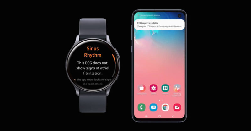 นั่นหมายความว่า Samsung Galaxy Watch Active 2 จะรองรับฟีเจอร์ ECG แบบเดียวกับที่ Apple นำมาใช้กับ Apple Watch Series 4 และ Series 5 โดย ECG ช่วยให้ผู้สวมใส่ Galaxy Watch Active 2 สามารถวัดและวิเคราะห์จังหวะการเต้นของหัวใจเพื่อตรวจหาความผิดปกติเกี่ยวกับภาวะหัวใจห้องบนสั่นพลิ้ว (Atrial Fibrillation)