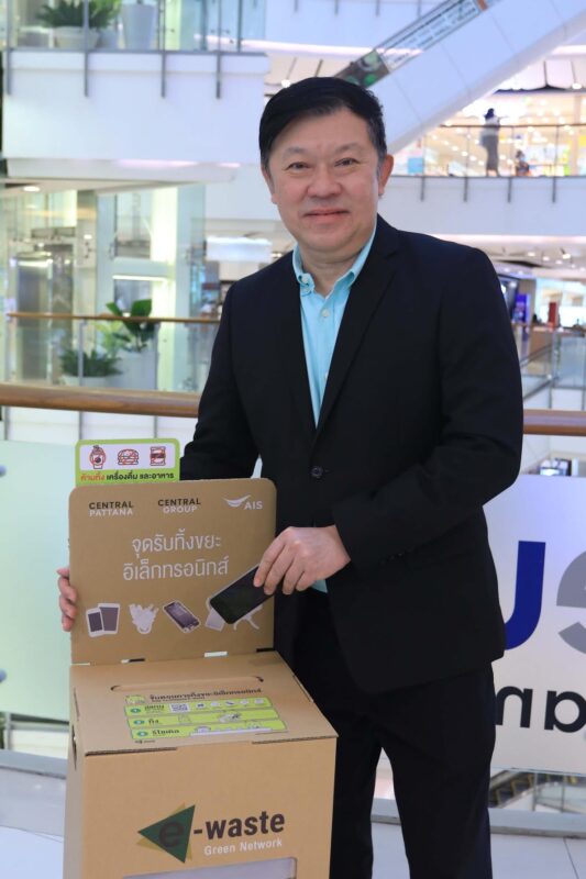 ทางด้าน นายพิชัย จิราธิวัฒน์ กรรมการบริหาร กลุ่มเซ็นทรัล กล่าวว่า “กลุ่มเซ็นทรัล มุ่งมั่นสานต่อเจตนารมย์ที่จะสร้างคุณภาพชีวิตที่ดีของคนไทยในทุกระดับอย่างยั่งยืน ผ่านโครงการเพื่อสังคม “เซ็นทรัล ทำ – ทำด้วยกัน ทำด้วยใจ” โดยตลอดระยะเวลาที่ผ่านมา เราตระหนักถึงบทบาทสำคัญในการรณรงค์รักษาสิ่งแวดล้อม และขับเคลื่อนการสร้างโลกสีเขียวภายใต้แคมเปญ “เซ็นทรัล กรุ๊ป เลิฟ ดิ เอิร์ธ” (CENTRAL Group Love the Earth) เพื่อสร้างประโยชน์ทั้งในระดับองค์กร ชุมชน และมหภาค โดยกลุ่มเซ็นทรัล ได้จับมือ กับ เอไอเอส ในการสนับสนุนจุดติดตั้งถังขยะอิเล็กทรอนิกส์ (E-Waste) บริเวณต่างๆ ในศูนย์การค้าเครือเซ็นทรัล เพื่อส่งเสริมให้เกิดการคัดแยกขยะอิเล็กทรอนิกส์ (E-Waste) อย่างถูกวิธีและยั่งยืน โดยขยะที่ได้จะผ่านกระบวนการจัดการอย่างถูกวิธี สามารถนำกลับมาใช้ประโยชน์ใหม่ได้ ส่งผลให้เกิดการลดปริมาณขยะอิเล็กทรอนิกส์และลดการสร้างคาร์บอนไดออกไซด์ให้เป็นศูนย์ (Journey to Zero) ที่ก่อให้เกิดอันตรายต่อสิ่งแวดล้อมและสุขภาพของประชาชนได้