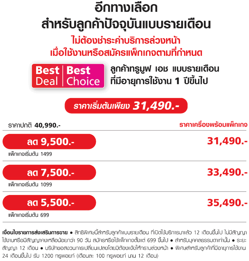สำหรับผู้ใช้บริการ AIS รายเดือน ที่มีอายุการใช้งาน 12 เดือนขึ้นไป สามารถใช้สิทธิ์รับส่วนลดสูงสุด 9,500 บาท โดยไม่ต้องชำระค่าบริการล่วงหน้า แต่ต้องสมัครหรือใช้แพ็กเกจรายเดือนขั้นต่ำ 1,499 บาท