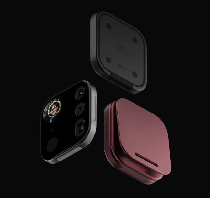 ดีไซน์เนอร์ Louis Berger นำเสนอคอนเซ็ปต์ Mosaic อุปกรณ์ที่เป็นโมดูลกล้องขนาดเล็กและแบน รูปทรงสี่เหลี่ยมจัตุรัสขอบมุมโค้ง เหมือนถูกแกะออกมาจากด้านหลังสมาร์ทโฟน สามารถใช้ถ่ายภาพและวิดีโอได้อย่างอิสระแบบสแตนด์อโลน และสามารถแนบติดกับสมาร์ทโฟนได้ รวมไปถึงอุปกรณ์สวมใส่ที่ไม่มีกล้องในตัว