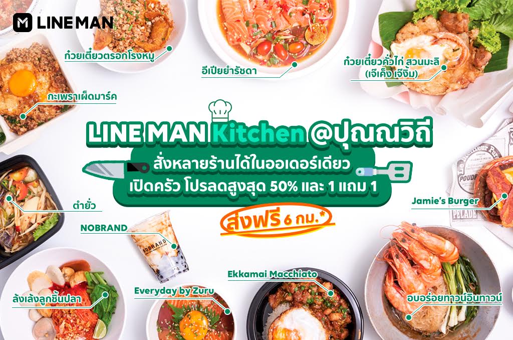 LINE MAN ผู้ช่วยเบอร์หนึ่ง เปิดบริการ LINE MAN Kitchen คลาวด์คิทเช่นแห่งแรกจาก LINE MAN ประเดิมปักหมุดทำเลศักยภาพย่าน “ปุณณวิถี” พร้อมด้วยระบบครัวมาตรฐานครบวงจร ช่วยร้านอาหารข้ามเขตขยายฐานลูกค้าครอบคลุมกรุงเทพฝั่งตะวันออก ชูจุดเด่นสั่งเมนูอร่อยๆจากหลายร้านได้ในออเดอร์เดียว พร้อมส่งฟรี 6 กม.แรก จาก 13 ร้านดังแนะนำโดย Wongnai ได้แก่ อบอร่อยทาวน์อินทาวน์, Jamie’s Burgers, เผ็ดมาร์ค, Zuru Everyday, Ekkamai Macchiato, ก๋วยเตี๋ยวตรอกโรงหมู, บะหมี่คนแซ่ลี, ล้งเล้งลูกชิ้นปลา, NOBRAND, อีเปียยำรัชดา, ก๋วยเตี๋ยวคั่วไก่สวนมะลิ (เจ๊เค็ง เจ๊งิ้ม), ตำยั่ว ครกยักษ์ และ Wonder Food by Andy Yang พร้อมอัดโปรโมชั่นลดสูงสุด 50 % และ 1 แถม 1 เอาใจสายกิน ตั้งแต่วันนี้ ถึง 18 มิ.ย. นี้