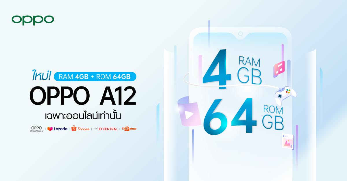หลังจากได้รับกระแสตอบรับอย่างล้นหลามของ OPPO A12 ครั้งนี้ OPPO จึงเตรียมอัพเกรด RAM เป็น 4GB และ ROM เป็น 64GB เพิ่มประสิทธิภาพการใช้งานให้เร็ว แรง ลื่นไหลยิ่งขึ้น พร้อมจัดเก็บจุใจยิ่งกว่าเดิม