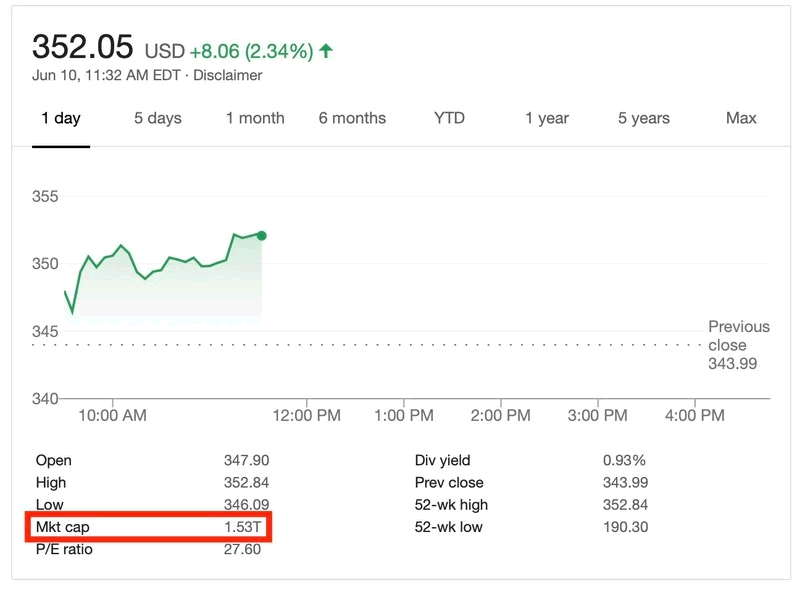 ด้วยผลประกอบการที่แข็งแกร่งทำให้ราคาหุ้นของ Apple เมื่อวานนี้ (10 มิถุนายน 2020) พุ่งสูงเป็นประวัติการณ์ จนทำให้ Apple กลายเป็นบริษัทแรกของสหรัฐอเมริกา ที่มีมูลค่าตลาดถึง 1.5 ล้านล้านดอลลาร์ หรือราว 46.4 ล้านล้านบาท